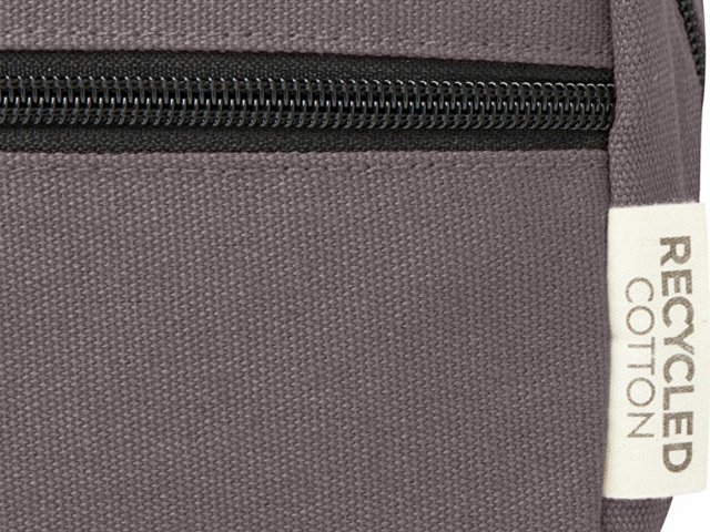 Косметичка из переработанного холста, сертифицированного по стандарту GRS, с подкладкой из переработанного РЕТ-пластика. Имеет передний карман на молнии и одно главное отделение на молнии с карманами для организации, а также удобную лямку. Декоративная металлическая пластина может придать логотипу сияние благодаря утонченному матовому покрытию. Емкость: 3,5 литр. |