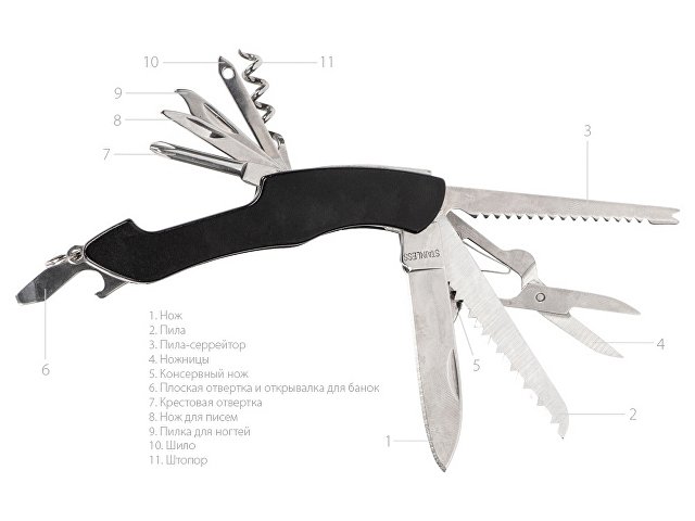 Cскладной нож-мультитул 11-в-1 Demi выполнен из нержавеющей стали. Поставляется в нейлоновом чехле.