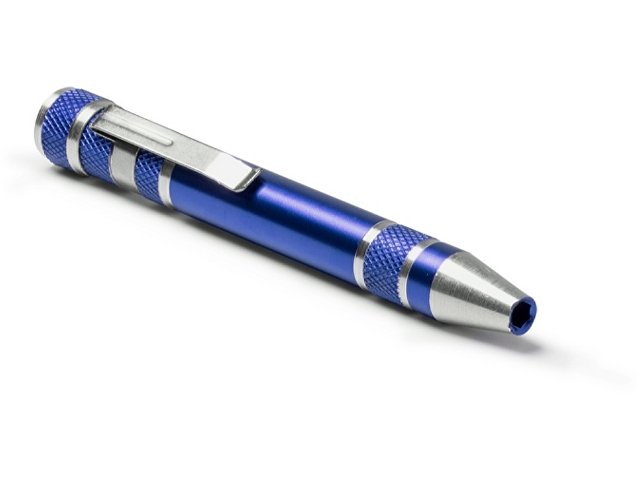 Алюминиевый мультитул в форме ручки. В комплекте 8 головок бит |