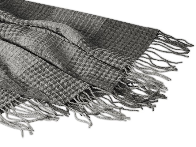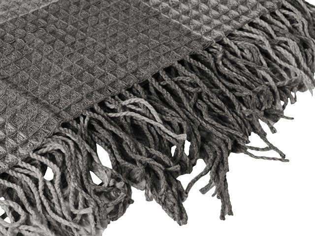 Теплый плотный плед из акрила, украшенный бахромой, имеет приятную на ощупь текстуру поверхности и создает атмосферу комфорта и уюта. |