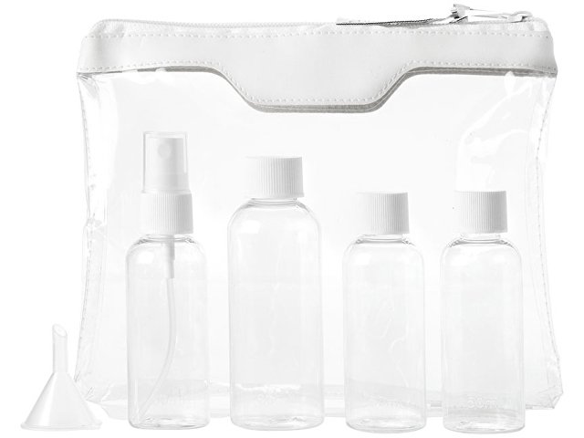 Одобренный дорожный набор бутылок для полетов Munich. Сумка для туалетных принадлежностей, которую можно брать в самолет. Включает 2 бутылки по 50 мл, 1 бутылку на 90 мл, 1 пульверизатор и воронку. Бутылки, пульверизатор и воронка упакованы в полиэтиленовый кулек отдельно от чехла. ПВХ. |