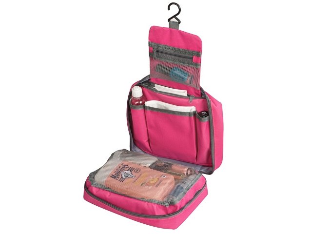 • Вместительное пространство с двумя большими отделениями и несколькими карманами дает возможность эргономично распределить весь дорожный арсенал косметических и туалетных принадлежностей.