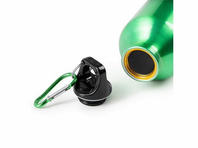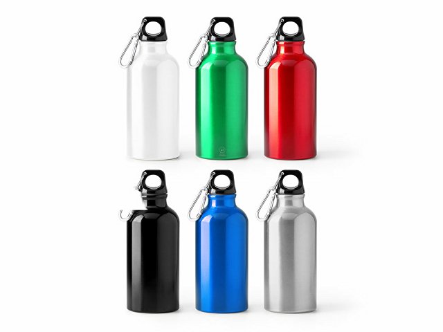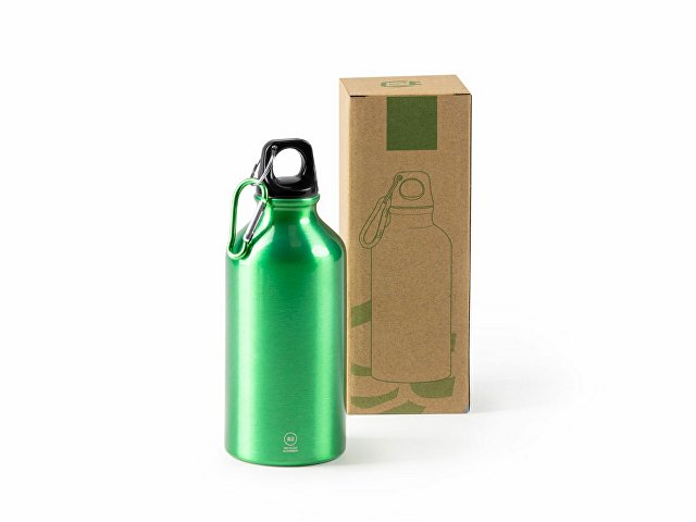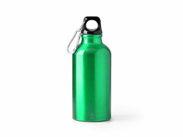 Бутылка из переработанного алюминия с карабином. Емкость 400 мл. Карабин для более удобной переноски бутылки, не рекомендуется для лазания. |