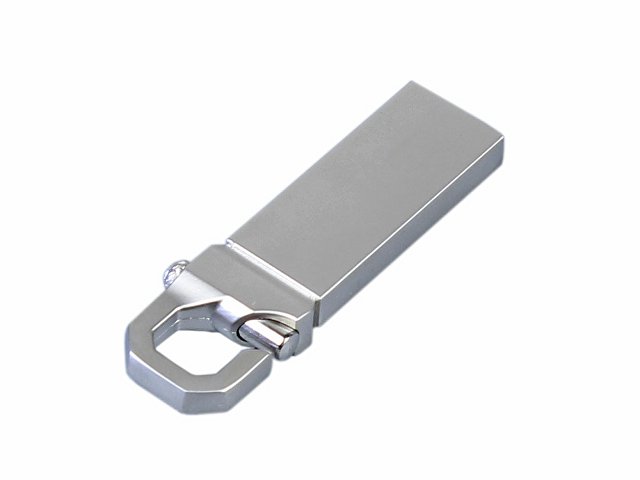 Флеш-накопитель с мини чипом, компактный дизайн, отверстие прямоугольной формы для цепочки, объем памяти 16 Гб. Поставляется с цепочкой.