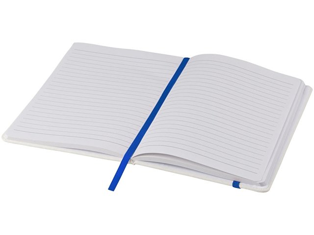 Белый блокнот A5 с цветной эластичной закладкой и резинкой. 96 страниц (60g/m2), линованная бумага. На обложке возможна цифровая печать. |