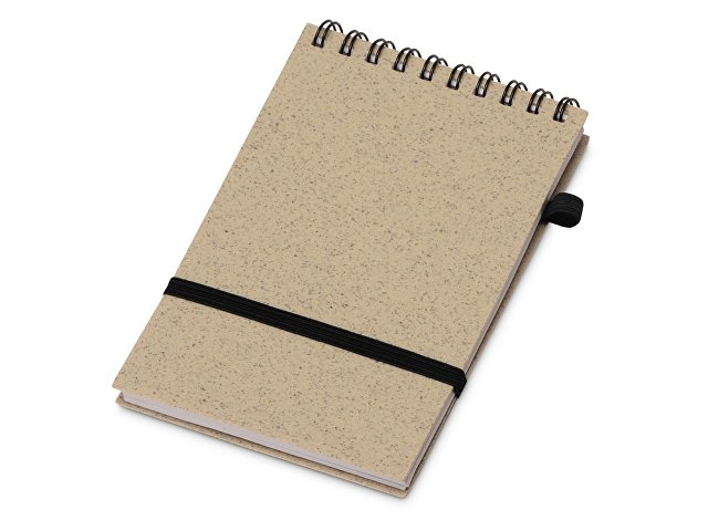 Блокнот с обложкой из переработанной пшеницы и пластика. Блок состоит из 60 листов переработанной бумаги белого цвета. Крепление - пружина. В комплекте шариковая ручка из пшеничной соломы. |