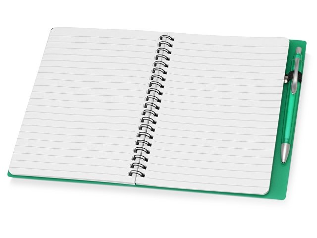 Блокнот Контакт в полипропиленовой обложке переплетен на пружине. В обложке блокнота предусмотрено окошко, в которое можно поместить визитную карточку или полиграфическую вставку. В комплекте с блокнотом идет ручка, которая вставляется в петельку сбоку.