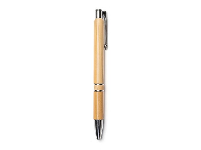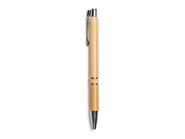 Блокнот и ручка из бамбука формата А5. Блокнот с твердой обложкой и 80 разлинованными листами из переработанной бумаги. Шариковая ручка с хромированными деталями и синими чернилами. |
