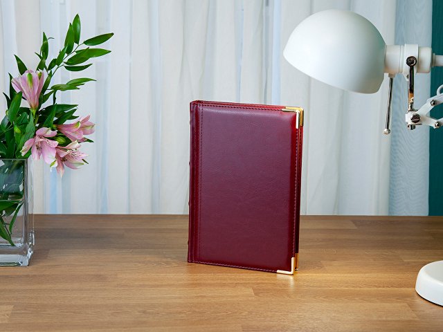 Классический деловой ежедневник линии Boss – образец элегантности. Гладкую тонкую фактуру экокожи подчеркивает декоративная строчка по контуру и металлические закругленные уголки золотистого цвета.