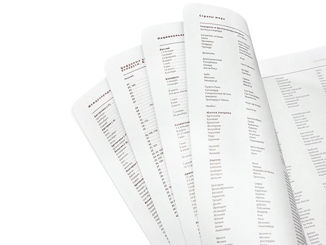 В ежедневнике Mercury есть полезная справочная информация, а также 272 страницы для записи идей, мыслей и составления рабочих планов. Для изготовления страниц используется качественный белый офсет повышенной плотности (70 г/кв м), которая производится в Японии и подходит для всех видов чернил.