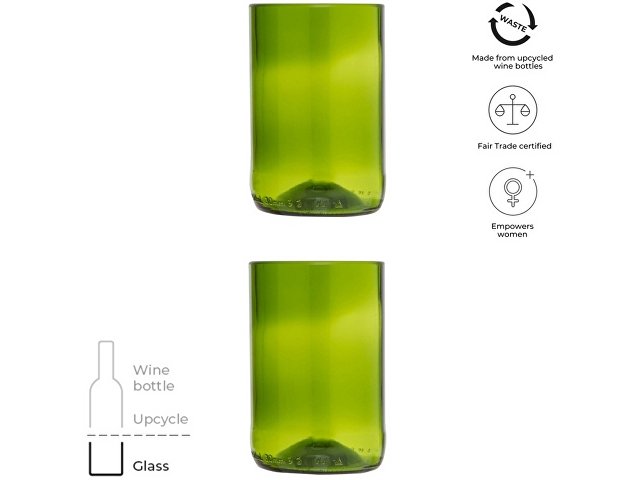 Набор из двух бокалов объемом 280 мл, изготовленных из переработанных винных бутылок. Эти стаканы идеально подходят для любого напитка, что делает их идеальными вариантом как для повседневного использования, так и для особых случаев. Поставляется в подарочной коробке. Переработанное стекло. |