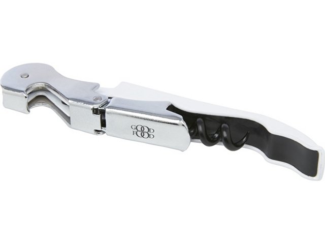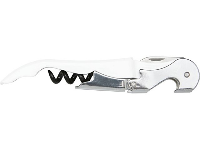 Нож официанта из нержавеющей стали с цветным корпусом со штопором, обрезчиком для фольги и открывалкой для бутылок. Благодаря двухступенчатой конструкции с его помощью вытащить пробку из бутылки не составит труда. |