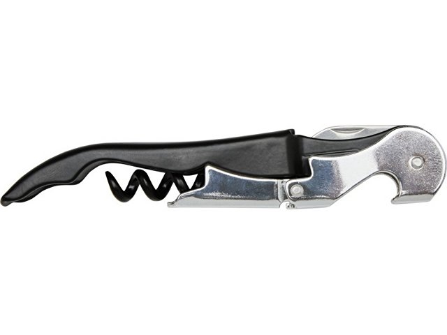 Нож официанта из нержавеющей стали с цветным корпусом со штопором, обрезчиком для фольги и открывалкой для бутылок. Благодаря двухступенчатой конструкции с его помощью вытащить пробку из бутылки не составит труда. |