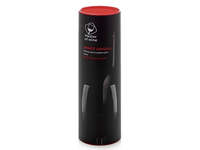 В винном наборе Pinot Grigio собрано все, что необходимо для откупоривания, подачи и длительного хранения вина. Аксессуары поставляются в эффектном красном тубусе и брендированном шубере.