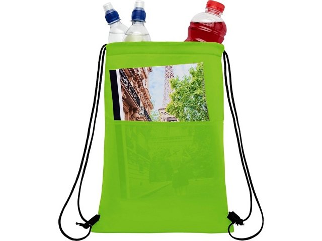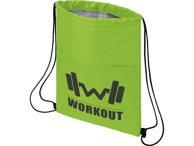 Сумка-холодильник затягивается на шнурок черного цвета. С открытым передним карманом. Вмещает 12 банок. Прочность до 5 кг. |
