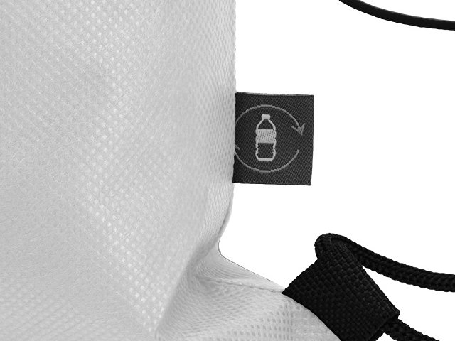 Рюкзак-мешок изготовлен из переработанного пластика. Затягивается с помощью двух боковых шнурков. |