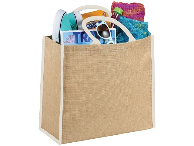 Сумка для покупок. Открытое основное отделение на липучке. Двойные ручки высотой 17 см. Джут. |