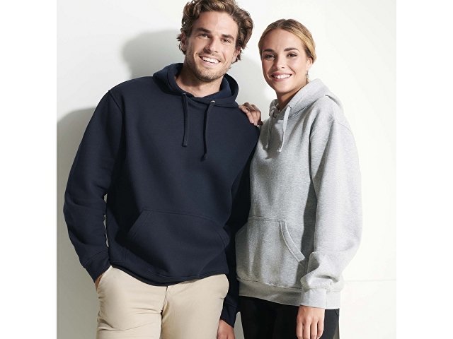 Толстовка с капюшоном, карман кенгуру на полочке. Эластичный риб1х1 по манжетам и низу изделия.