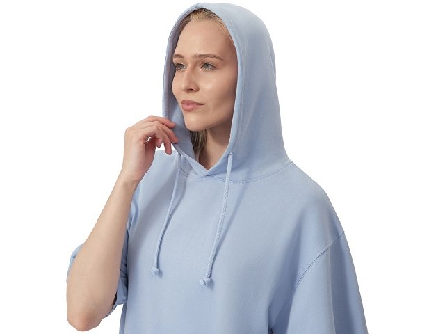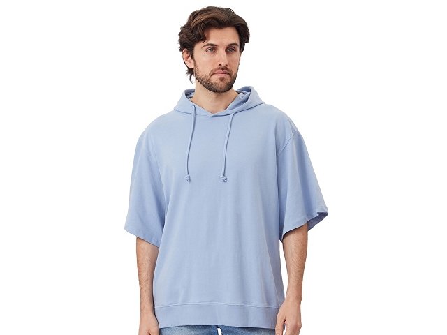 Худи с коротким рукавом выполнено из хлопкового френч терри с петельками на изнаночной стороне. Подкладка капюшона выполнена из основного полотна для объемной посадки. Модель комфортной и актуальной посадки оверсайз отлично подходит для обычной жизни и в качестве промо мерча.
