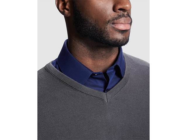 Джемпер c V вырезом тонкой вязки для мужчин. Отделка рибом 1х1 по горловине, низу и манжетам |