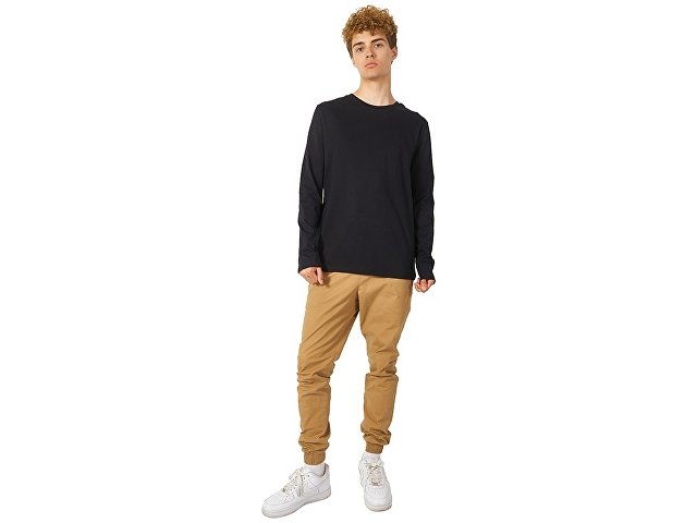 Футболка с длинным рукавом комфортной посадки с боковыми швами. Горловина обработана рибом 1х1 и тесьмой по спинке. Футболка выполнена из хлопкового джерси. |
