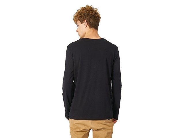 Футболка с длинным рукавом комфортной посадки с боковыми швами. Горловина обработана рибом 1х1 и тесьмой по спинке. Футболка выполнена из хлопкового джерси. |
