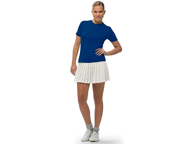 Женская футболка с короткими рукавами Ace. Модель стандартной посадки. Женская и детская модели - со швами по бокам. Резинка с эластаном и двойной строчкой на воротнике. Лента от плеча к плечу. Однослойная джерси, 100% хлопок. 150 г/м?. |