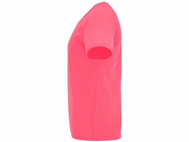 Спортивная футболка с коротким рукавом реглан. Круглый вырез горловины с отделкой плоским швом. Рукав сложного кроя для обеспечения дополнительного удобства при занятиях спортом. Отделка плоским швом с застилом по пройме и рукавам.