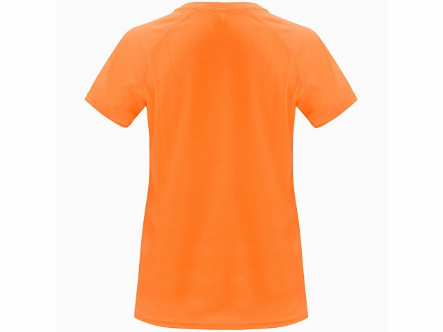 Спортивная футболка с коротким рукавом реглан для женщин. Круглый вырез горловины с отделкой плоским швом. Рукав сложного кроя для обеспечения дополнительного удобства при занятиях спортом. Отделка плоским швом с застилом по пройме и рукавам.