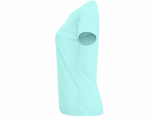 Спортивная футболка с коротким рукавом реглан для женщин. Круглый вырез горловины с отделкой плоским швом. Рукав сложного кроя для обеспечения дополнительного удобства при занятиях спортом. Отделка плоским швом с застилом по пройме и рукавам.