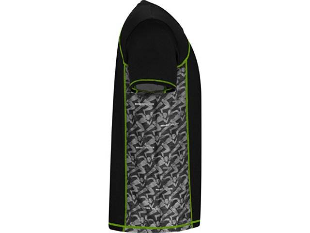 Спортивная футболка с коротким рукавом и принтованными вставками. Контрастные отстрочки плоским швом, светоотражающие элементы на полочке и спинке. Эко лейбл на рукаве.