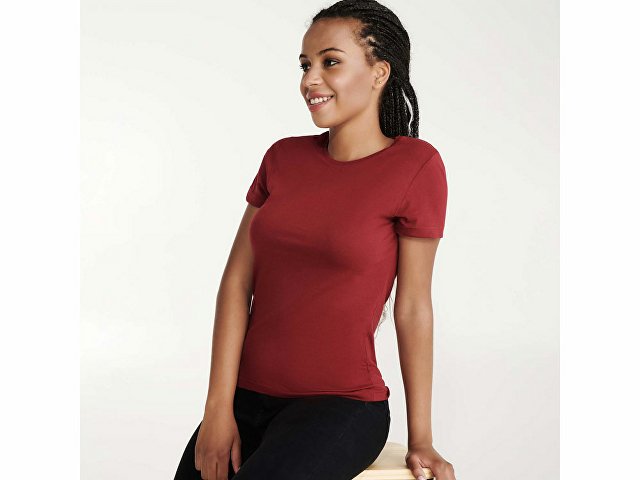 Приталенная женская футболка с боковыми швами и круглым вырезом горловины, двухслойный риб 1х1. Широкая цветовая палитра.