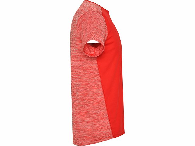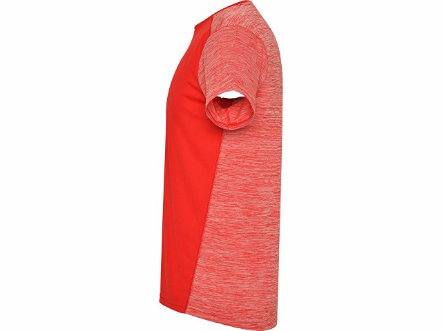 Футболка с коротким рукавом из технологического полотна. Круглый вырез горловины. Комбинация двух полиэстеровых полотен. Основное полотно на полочке со структурой, дополнительное полотно на спинке, рукавах и плечах с меланжевым эффектом. Задняя часть немного длиннее. Легко сохнущее дышащее полотно.