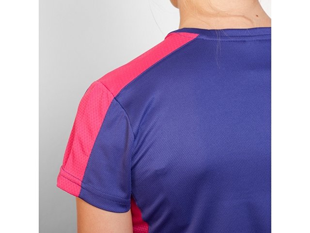 Женская футболка с коротким рукавом. V-образная горловина. Комбинация из 2 полотен контрастного цвета: структурное полотно на полочке и дышащая 3D сетка на плечах и боках. |