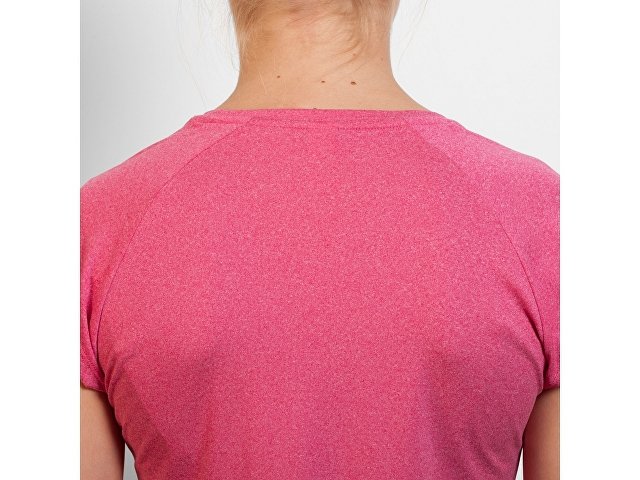 Спортивная женская футболка с коротким рукавом реглан. Вырез горловины V. Полотно из полиэстера на ощупь напоминающее хлопок. Приталенный силуэт. |