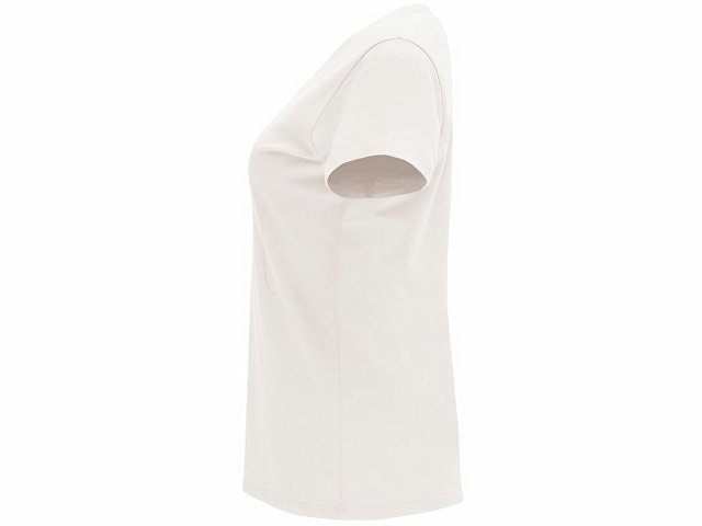 Женская приталенная футболка. Круглый вырез горловины обработан рибом 1х1. Шов горловины укреплен тесьмой. |