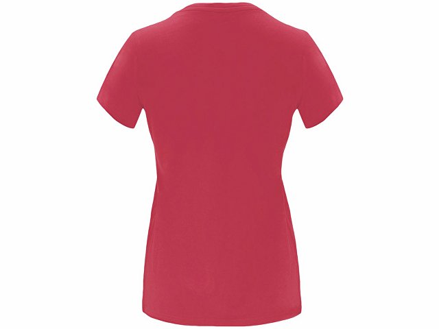 Женская приталенная футболка. Круглый вырез горловины обработан рибом 1х1. Шов горловины укреплен тесьмой. |