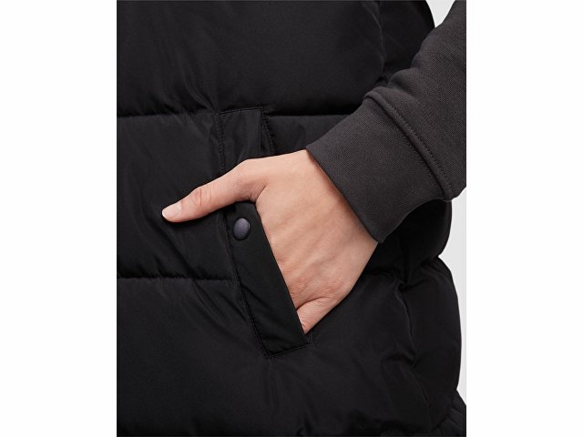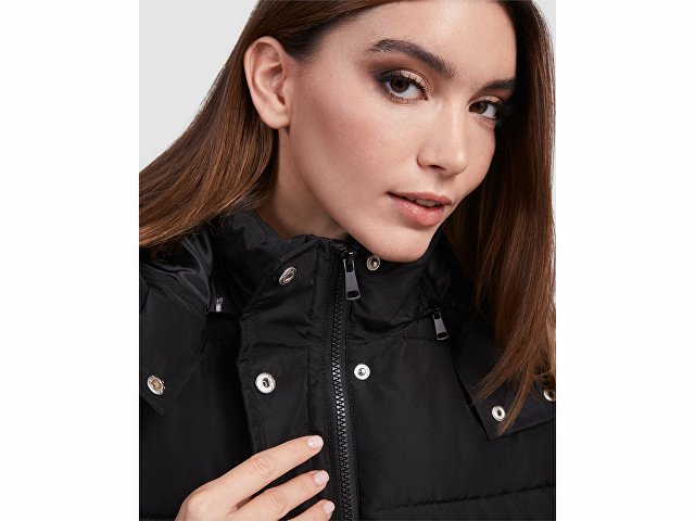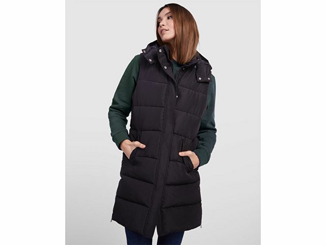 Женский стеганый жилет со съемным капюшоном.
