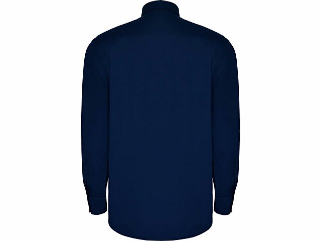 Рубашка мужская с длинным рукавом на семи пуговицах. Накладной карман на груди слева, закругленный низ изделия. Уголки воротника продублированы пуговицами.