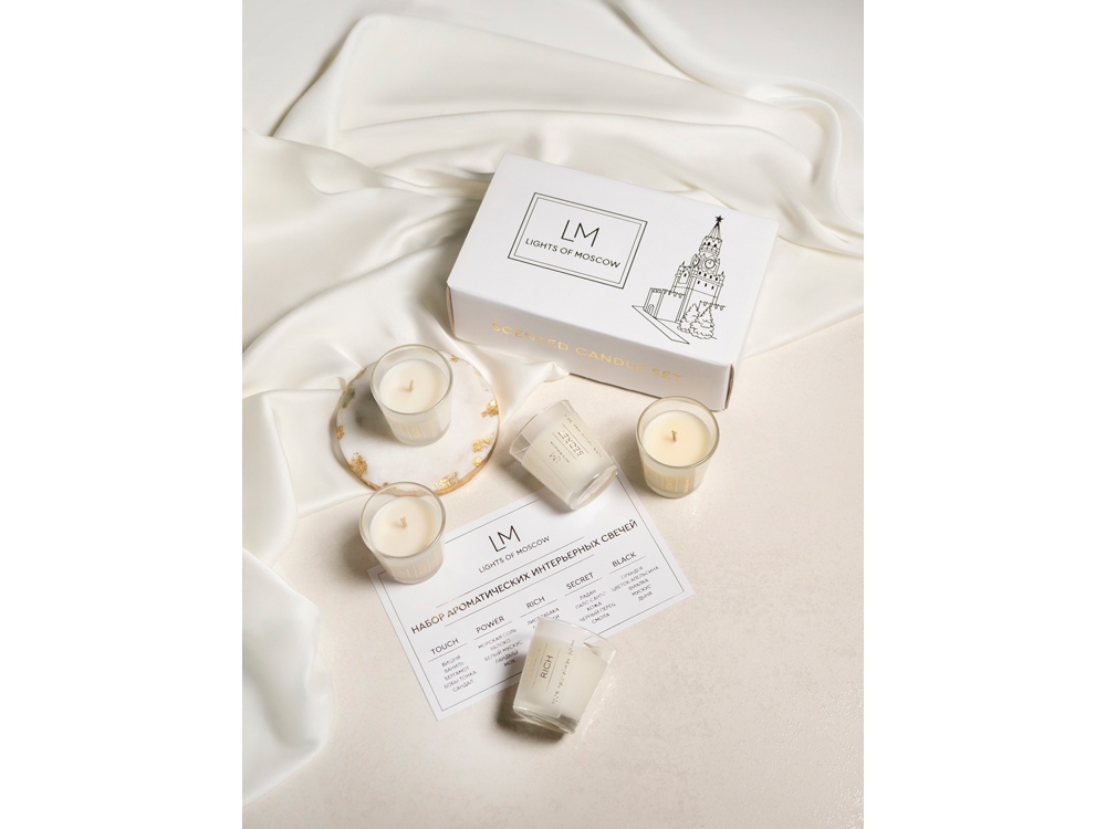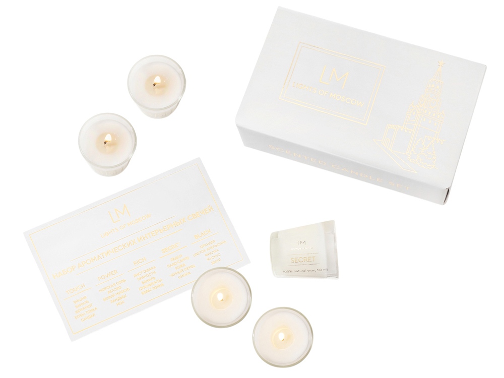 Подарочный набор ароматических свечей - это не только прекрасный, необычный подарок, но и отличный способ познакомиться брендом Lights of Moscow и его эксклюзивными ароматами.