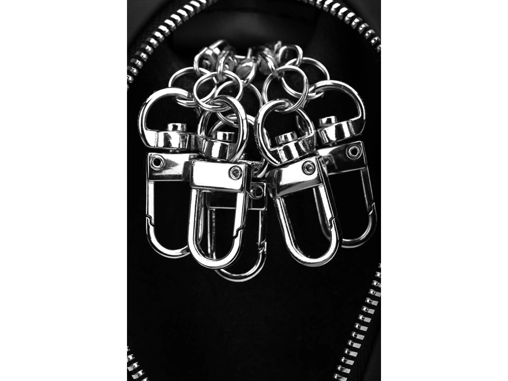 Простая, но в тоже время стильная ключница. Небольшие кольца для ключей, делают эту ключницу максимально легкой. 5 колец для ключей. Металлическая молния придает строгости внешнему виду! |