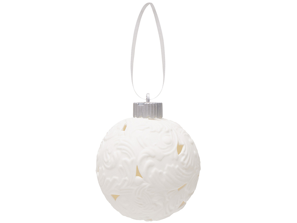 Фарфоровый шар с росписью в технике бисквит. Игрушка ручной работы. Матовая, бархатистая поверхность и пастельные тона создают утонченный образ старинного зимнего праздника. Это воплощение изящества и ностальгии. Шар светится изнутри мягким и ровным светом, наполняя пространство атмосферой спокойствия и волшебства.
