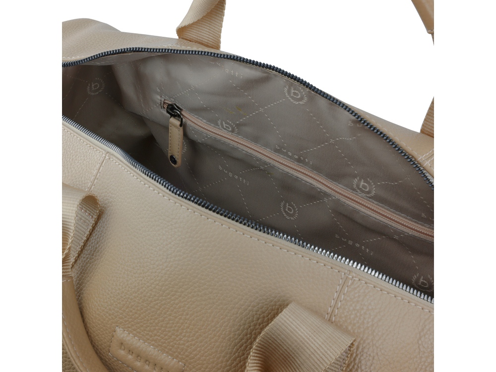 Функциональная организация: основное отделение на молнии с карманом на молнии, 2 открытых кармана, задний карман на молнии, 2 ручки, съемный регулируемый плечевой ремень (до 140 см).