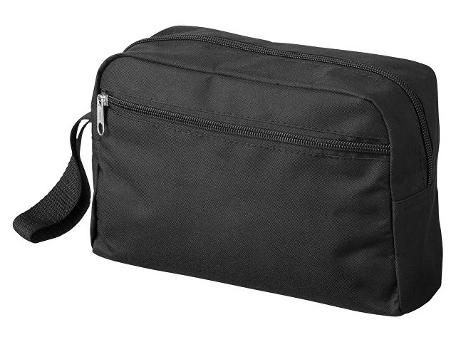 Вместительная косметичка с петлей, основным отделением на молнии и передним карманом на молнии из полиэстера. |