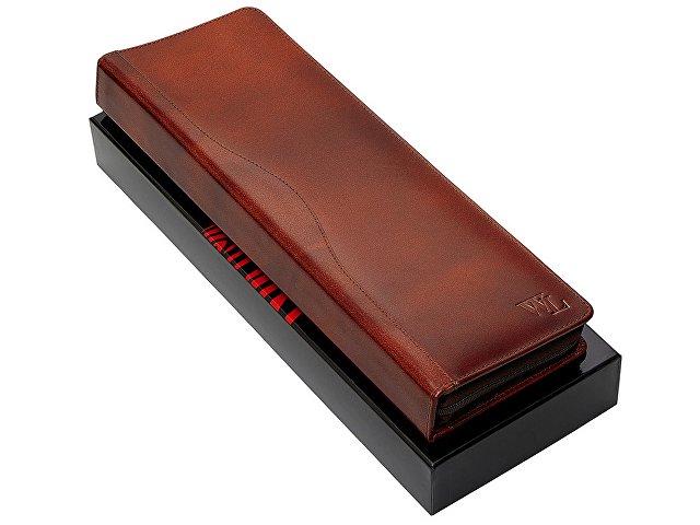 Компактный чехол для хранения галстуков оснащен двумя креплениями. Чехол выполнен из натуральной кожи коричневого оттенка. Благодаря чехлу аккуратно хранить и брать с собой галстуки в командировку стало еще удобнее. |