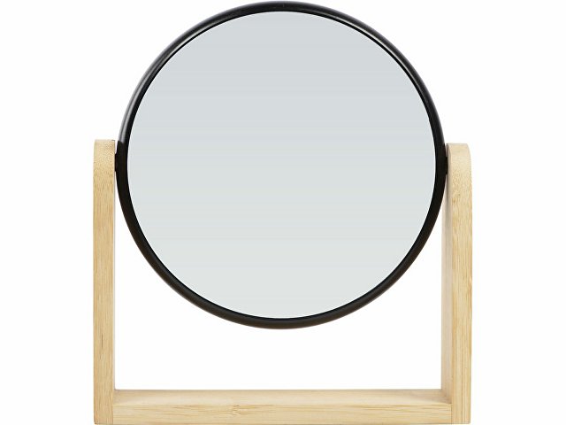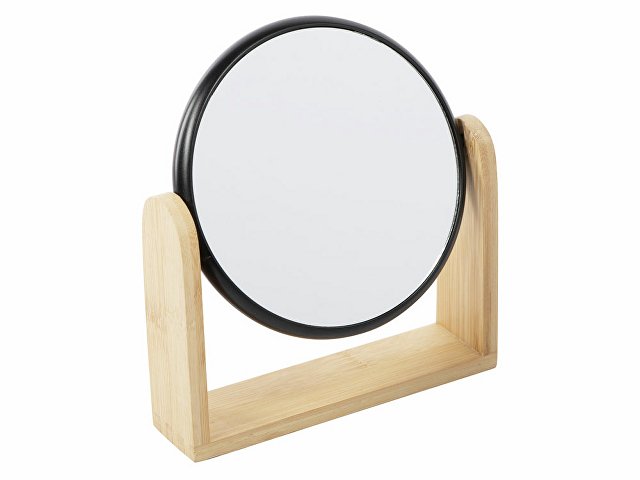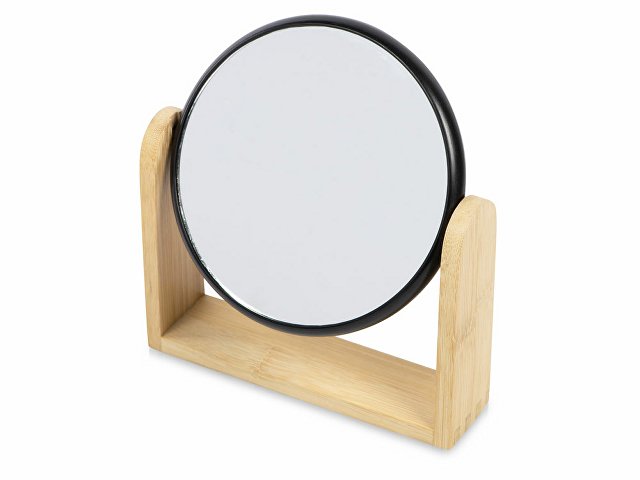 Стильное двустороннее зеркало с бамбуковой подставкой в черной рамке. Одна сторона показывает стандартное отражение, другая - с 2-хкратным увеличением. |