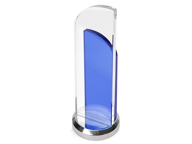 Утонченный вариант награды из стекла двух цветов. Конструкция воссоздает образ поднятого паруса. Нанесение можно сделать на любом из стеклянных элементов. |