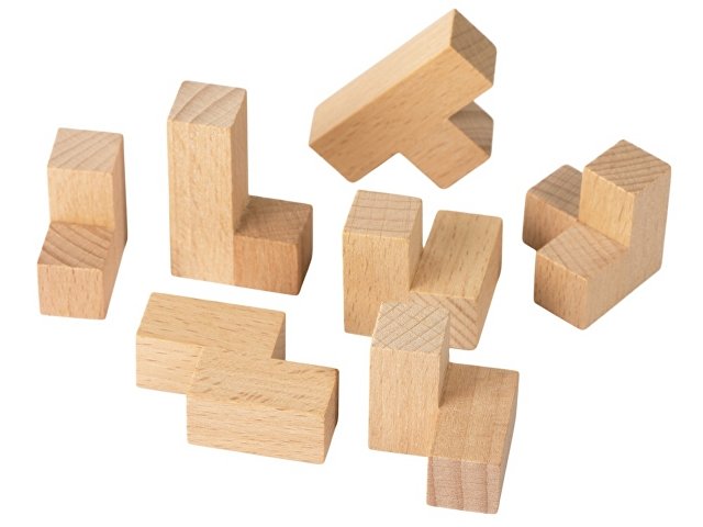 Состоит из семи деревянных деталей, поставляется в хлопковом мешочке на завязках. Кастомизация возможна, как на самих деталях, так и на мешочке. |