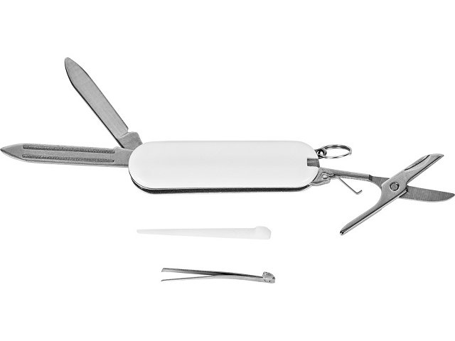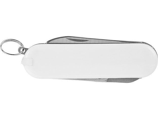 Складной нож в пластиковом глянцевом корпусе. Можно удобно прикрепить на ключницу. В комплект входят: