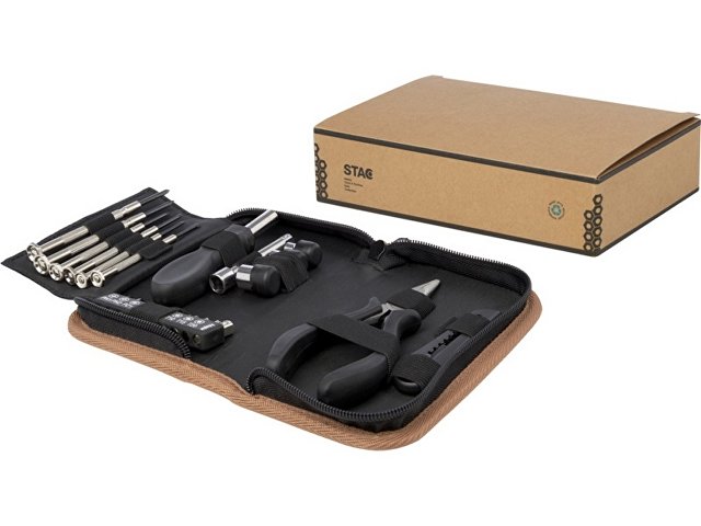 Набор инструментов Spike сочетает в себе практичность, долговечность и экологичность в одной красивой упаковке. Его чехол для хранения из пробкового дуба не только привлекателен визуально, но и экологически безопасен без ущерба для качества и производительности. Внутри чехла вы найдете набор из 24 основных инструментов, изготовленных из углеродистой стали и переработанной пластмассы, сертифицированной RCS: 1 нож для чистого реза и точной обрезки, 6 прецизионных отверток для деликатных работ, 10 бит отвертки, 1 ручка отвертки с удобной рукояткой, 1 удлинитель для труднодоступных мест, 4 насадки для различных работ и 1 длинноносые плоскогубцы для захвата и изгиба. Поскольку пробковый дуб является природным материалом, цвет и размер изделия могут слегка различаться, что, в свою очередь, может повлиять на итоговый вид печати. Упаковано в подарочную коробку STAC из экологически чистых источников. Carbon steel, Recycled PP Plastic. |